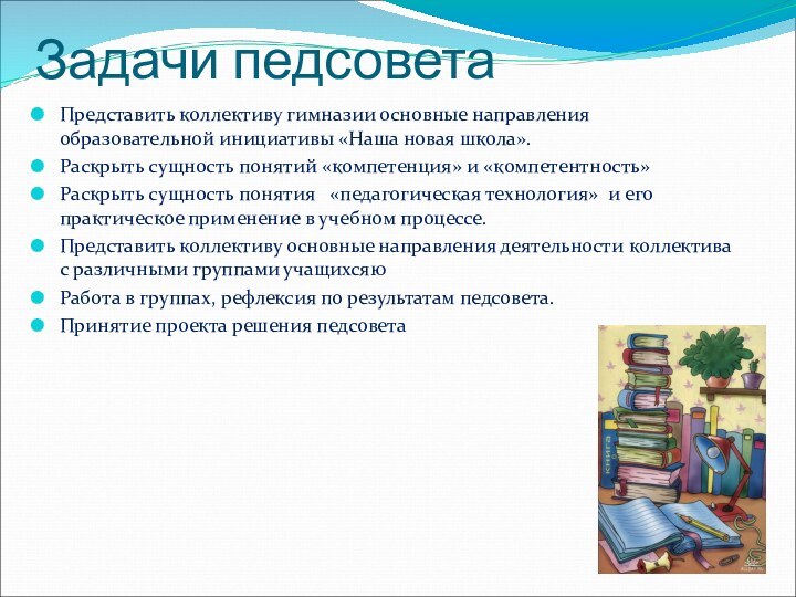 Представить коллективу основные направления деятельности коллектива с различными группами учащихсяю