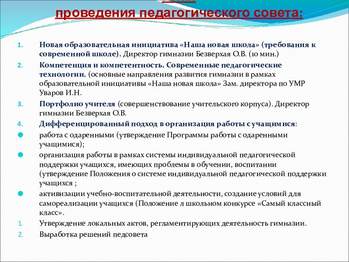 РЕШЕНИЕ ПЕДСОВЕТА О ВВЕДЕНИИ В ДЕЙСТВИЕ СИСТЕМЫ ИНДИВИДУАЛЬНОЙ