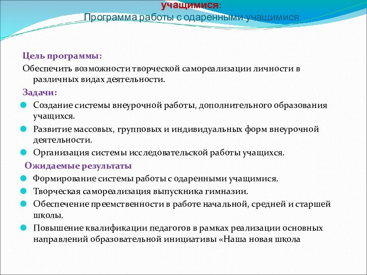 работа с одаренными (утверждение Программы работы с одаренными учащимися);