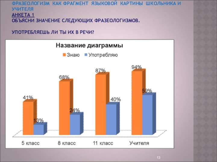 ФРАЗЕОЛОГИЗМ КАК ФРАГМЕНТ ЯЗЫКОВОЙ КАРТИНЫ ШКОЛЬНИКА И УЧИТЕЛЯ