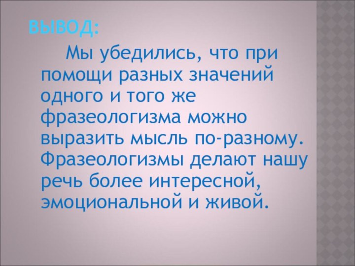 Фразеологизмы делают нашу речь более интересной, эмоциональной и живой.