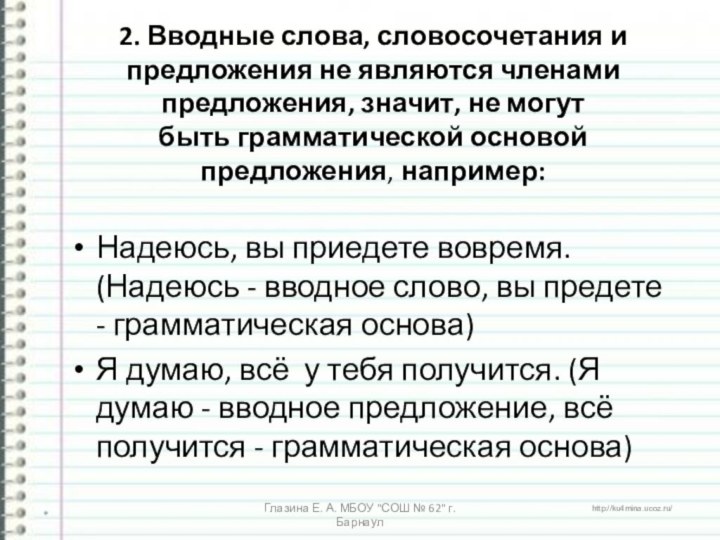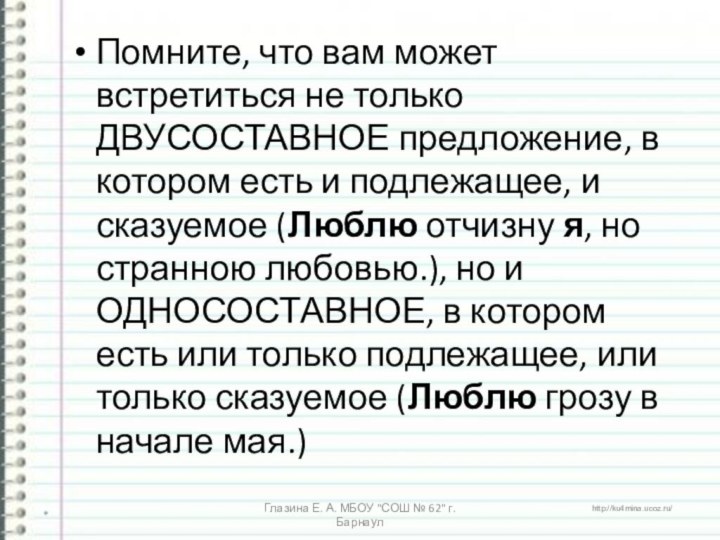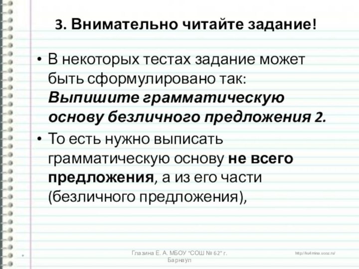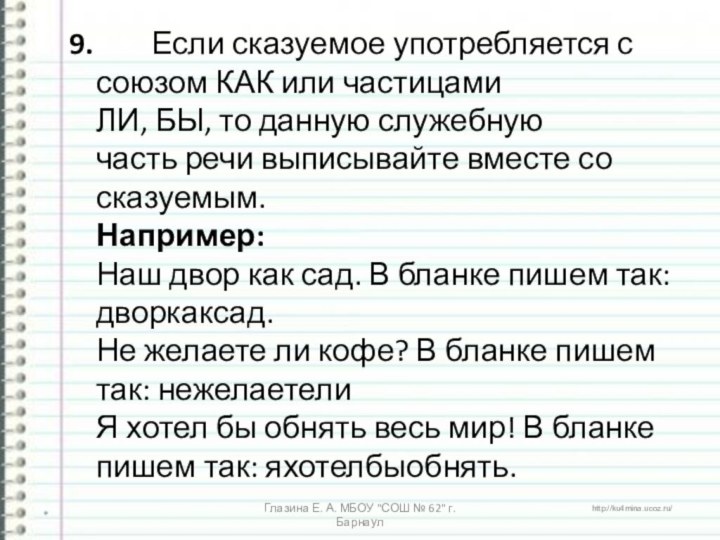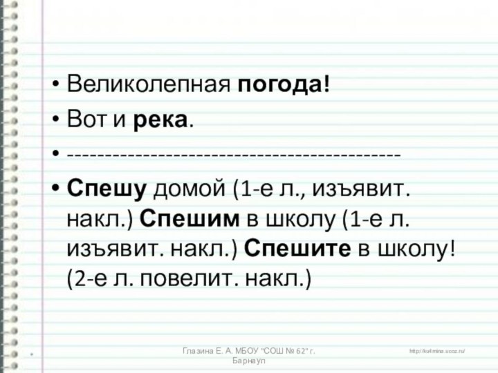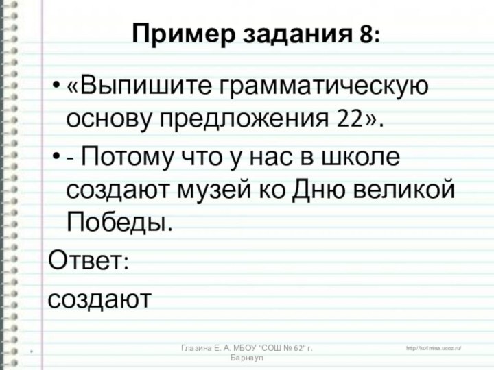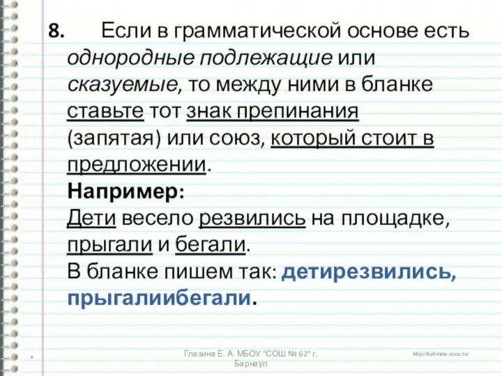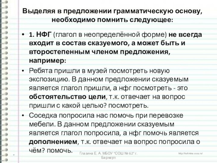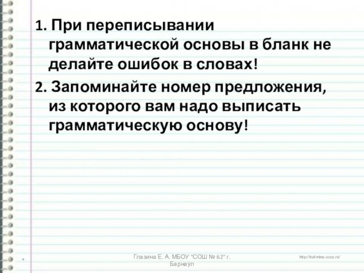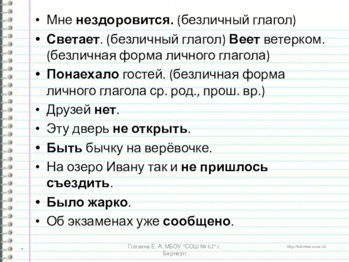 Глазина Е. А. МБОУ "СОШ № 62" г. Барнаул