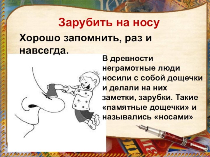 заметки, зарубки. Такие «памятные дощечки» и назывались «носами»