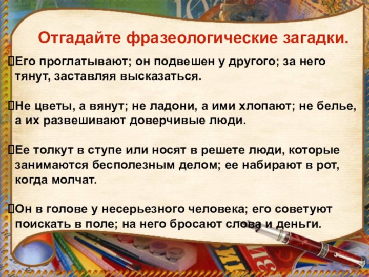 Фразеологизмы родились из песен, сказок, притч, пословиц русского