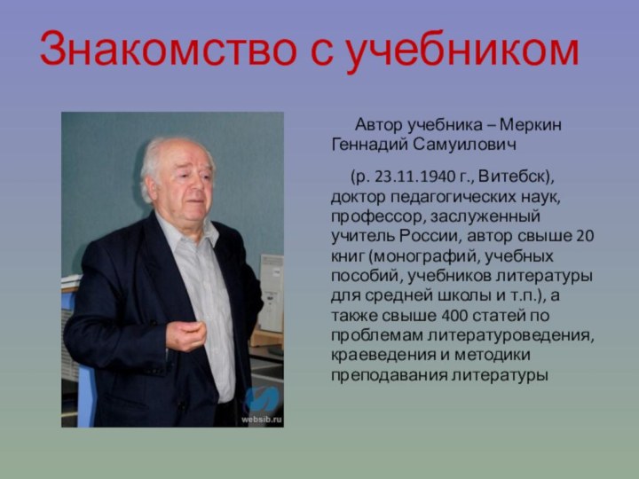 Витебск), доктор педагогических наук, профессор, заслуженный учитель России, автор свыше 20 книг (монографий, учебных пособий, учебников литературы для средней школы и т.п.), а также свыше 400 статей по проблемам литературоведения, краеведения и методики преподавания литературы