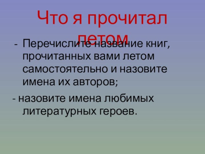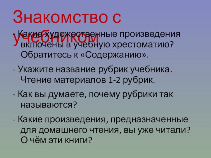- Какие произведения, предназначенные для домашнего чтения, вы уже читали? О чём эти книги?