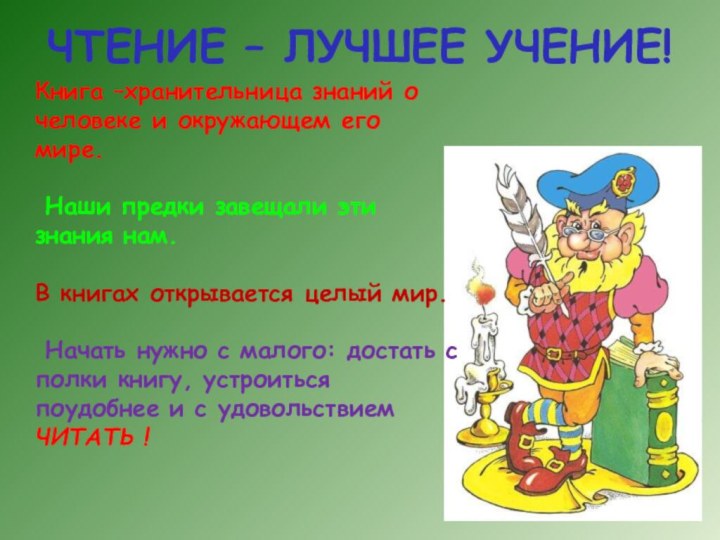 ЧТЕНИЕ – ЛУЧШЕЕ УЧЕНИЕ!
