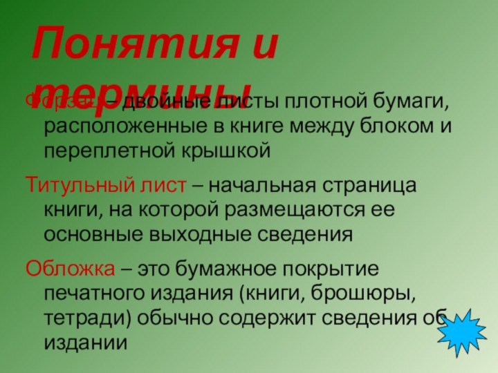 Обложка – это бумажное покрытие печатного издания (книги, брошюры, тетради) обычно содержит сведения об издании