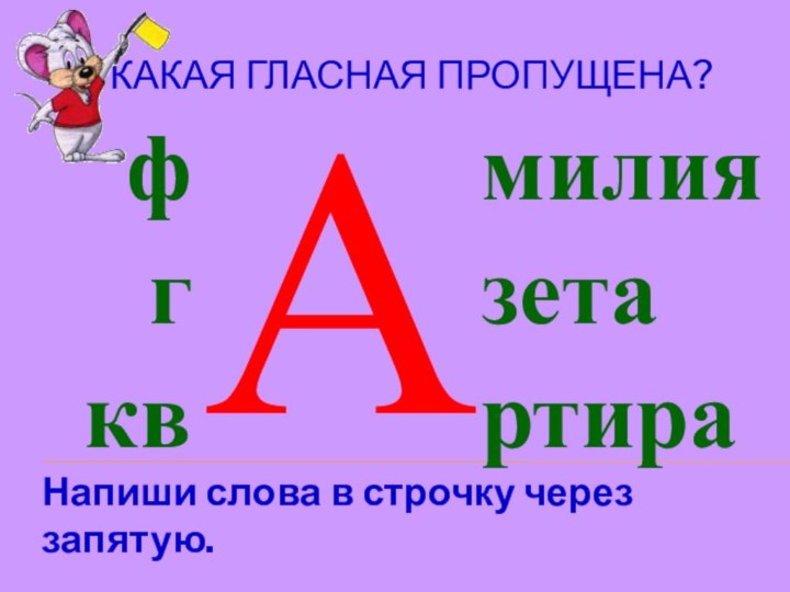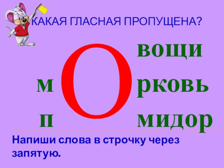 КАКАЯ ГЛАСНАЯ ПРОПУЩЕНА?Напиши слова в строчку через запятую.О