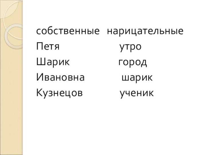 собственные нарицательныеПетя       утроШарик