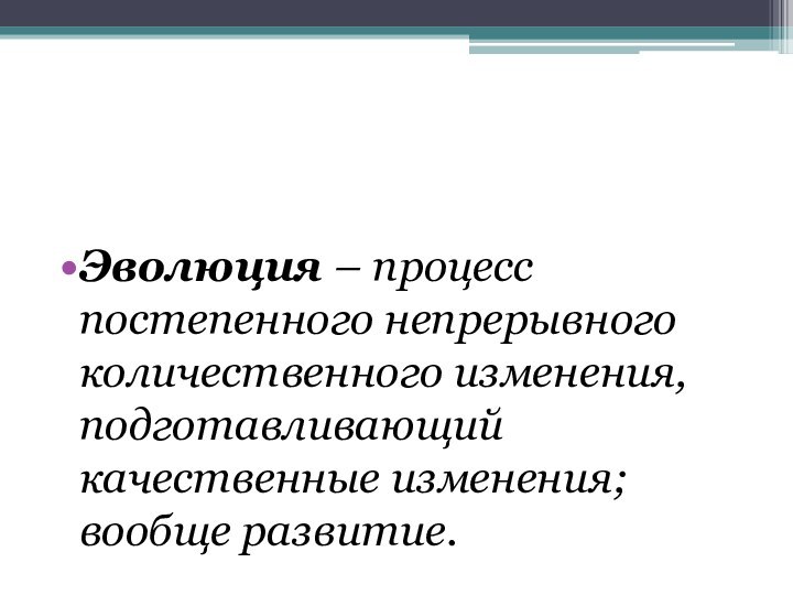 изменения, подготавливающий качественные изменения; вообще развитие.