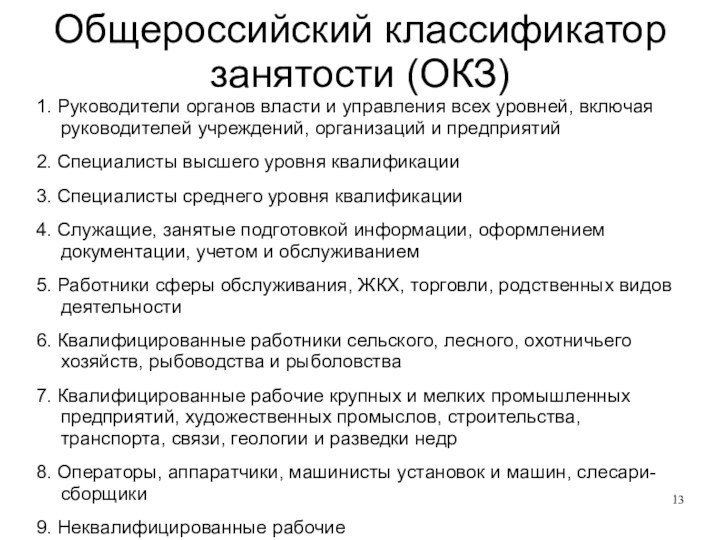 Изначально учитывала только занятость мужчин; и специалистов работающих в городских индустриях