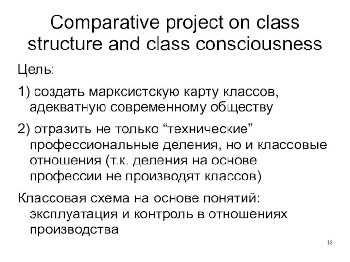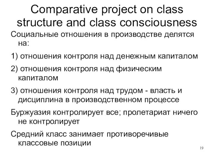 Comparative Project on Class Structure and Class Consciousness (Comparative Class Project: Wright)