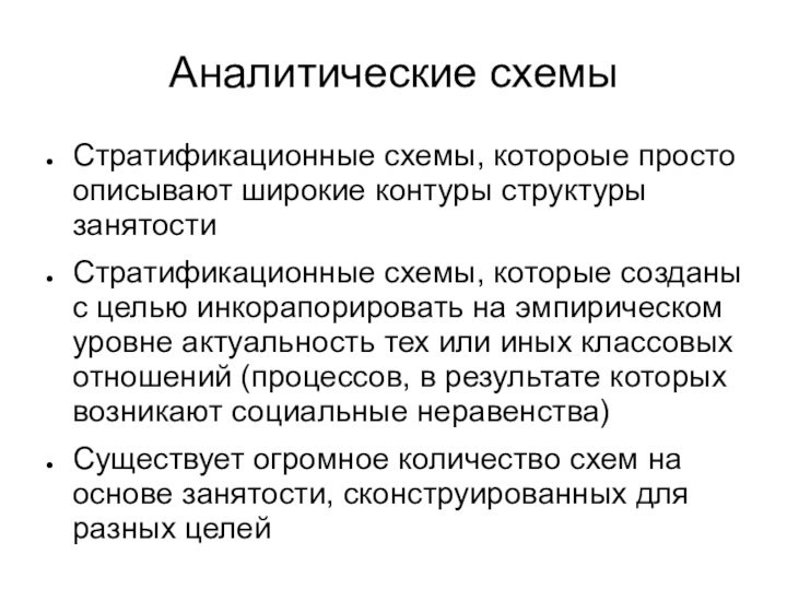 Стратификационные схемы, которые созданы с целью инкорапорировать