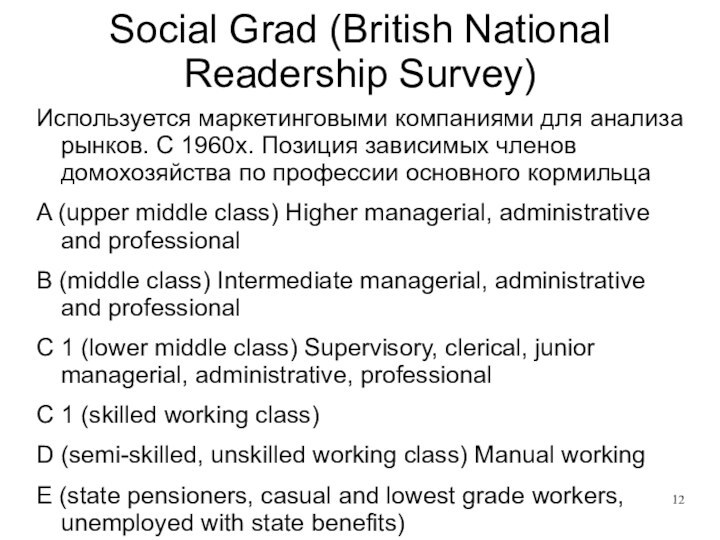 E (state pensioners, casual and lowest grade workers, unemployed with state benefits)