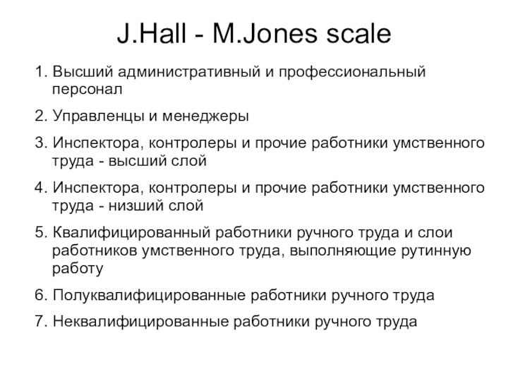 - аналитические схемы на основе субъективных шкал престижа или социального ранжирования типов занятости