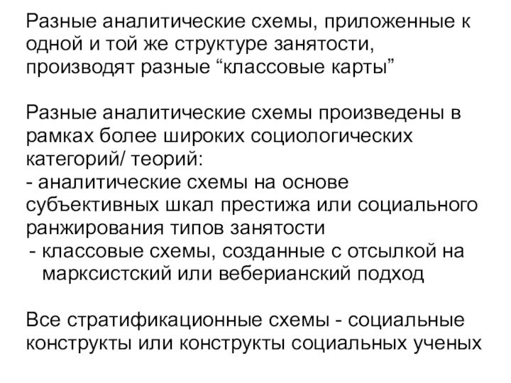 классовые схемы, созданные с отсылкой на марксистский или веберианский подход