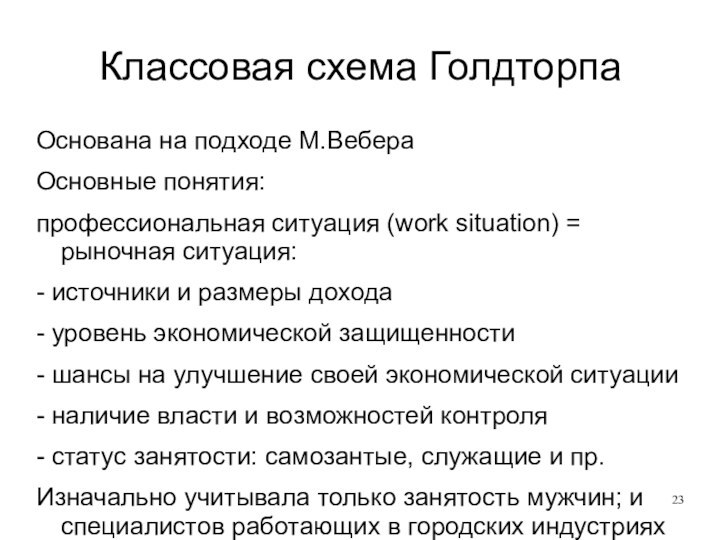 Теоретические классовые схемы: Goldthorpe (Голдторп)