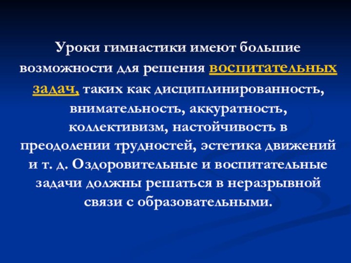 Уроки гимнастики имеют большие возможности для решения воспитательных