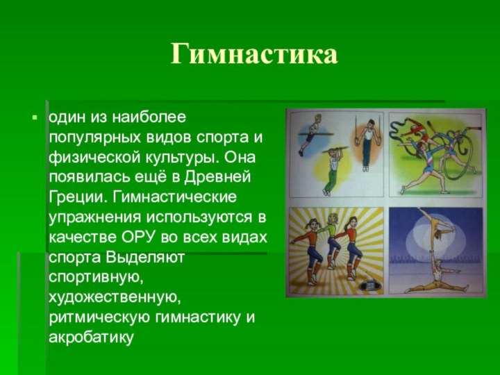 культуры. Она появилась ещё в Древней Греции. Гимнастические упражнения