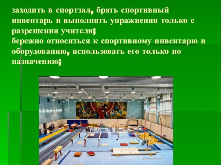 заходить в спортзал, брать спортивный инвентарь и выполнять