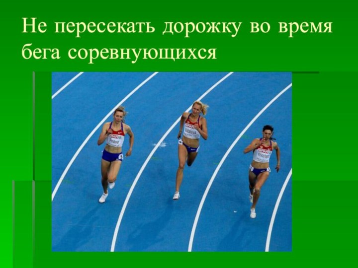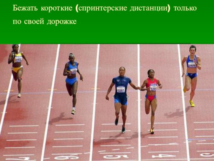 Бежать короткие (спринтерские дистанции) только по своей дорожке