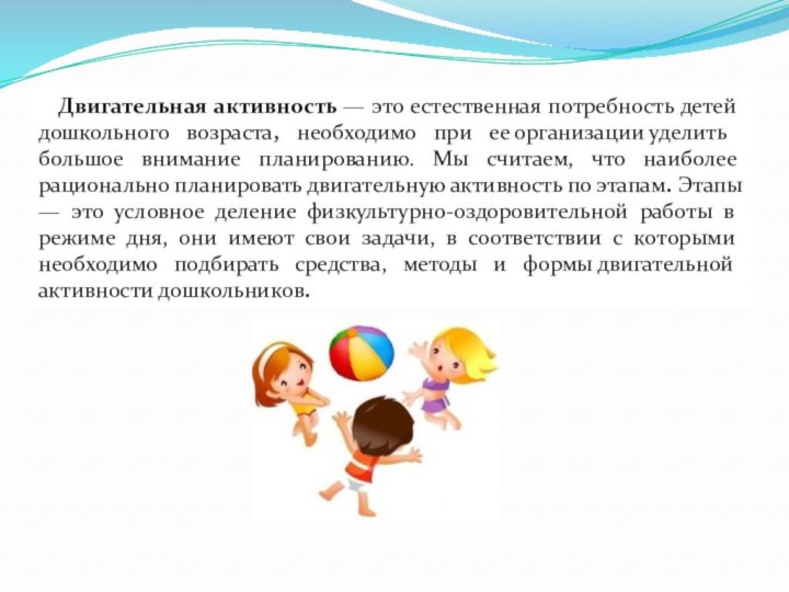 Двигательная активность — это естественная потребность детей дошкольного возраста,