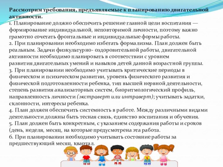 Рассмотрим требования, предъявляемые к планированию двигательной активности.