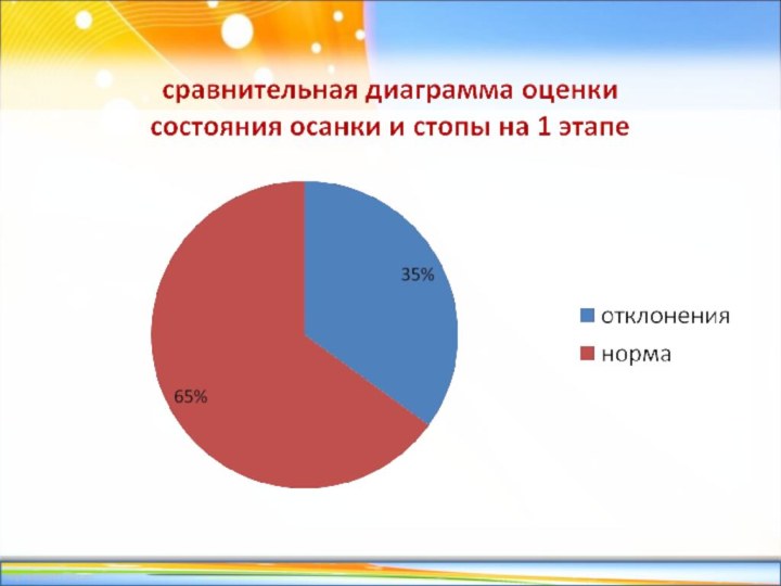 В течение учебного года прослеживались серьезные изменения в строении позвонков, так в начале проекта 35% детей имели нарушения осанки, в конце проделанной работы отклонения от нормы имели всего 17, 5% ;