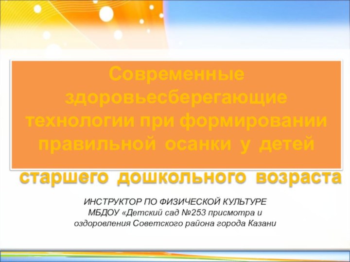 осанки является применение современных здоровьесберегающих технологий