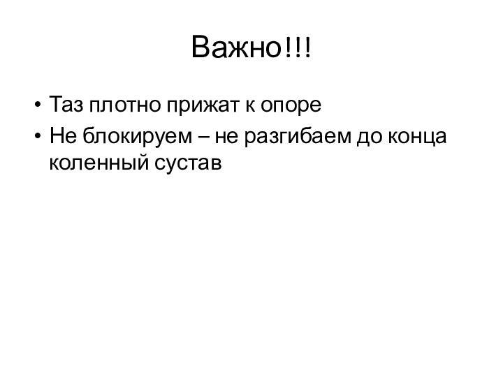 не переразгибать в верхней точке коленный сустав – всегда держим его чуть подсогнутым
