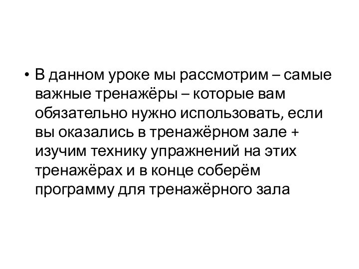оказались в тренажёрном зале + изучим технику упражнений на этих тренажёрах и в конце соберём программу для тренажёрного зала