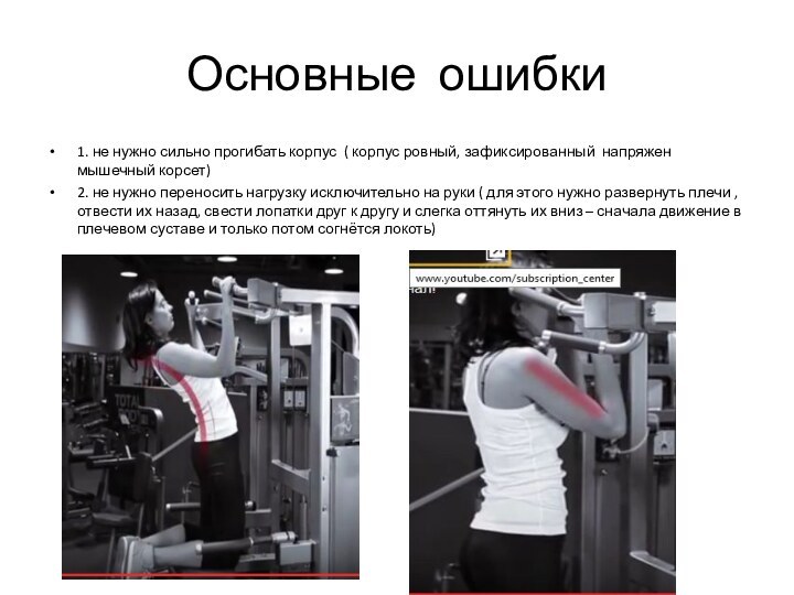 переносить нагрузку исключительно на руки ( для этого нужно развернуть плечи , отвести их назад, свести лопатки друг к другу и слегка оттянуть их вниз – сначала движение в плечевом суставе и только потом согнётся локоть)