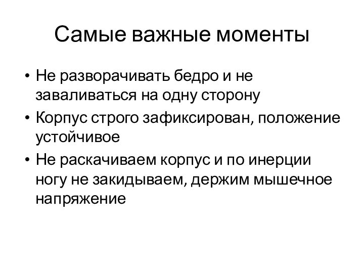 корпус и по инерции ногу не закидываем, держим мышечное напряжение