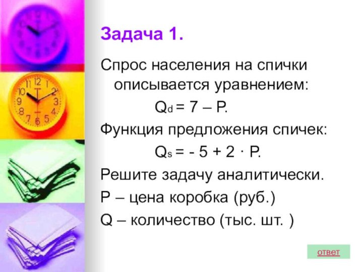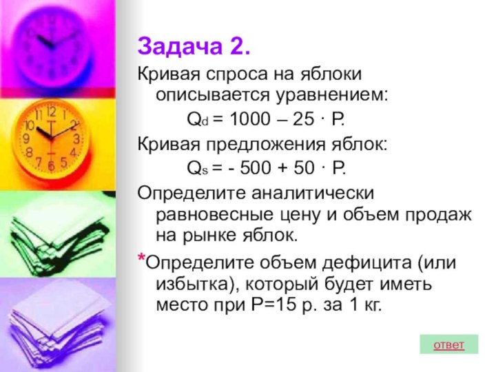 предложении воздействуют на рыночное равновесие. Решая задачи разными методами, сделать вывод о возможных ситуациях на рынке.
