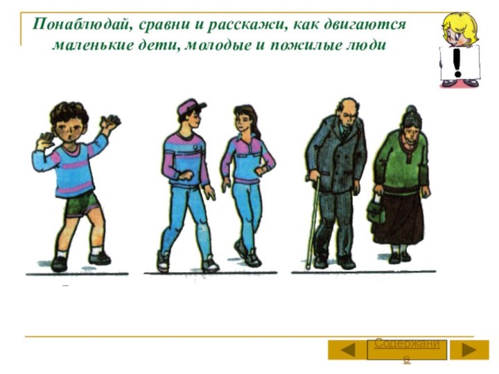 Понаблюдай, сравни и расскажи, как двигаются маленькие дети,