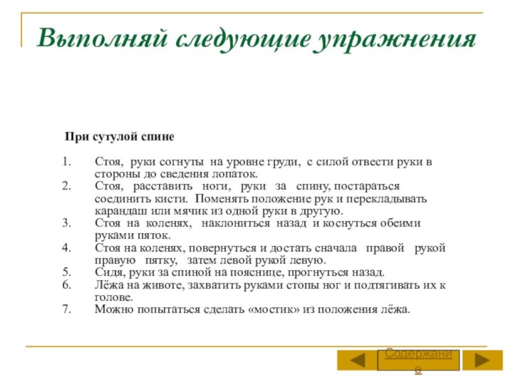 Сидя, руки за спиной на пояснице, прогнуться назад.