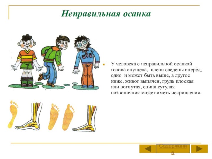другое ниже, живот выпячен, грудь плоская или вогнутая, спина сутулая позвоночник может иметь искривления.