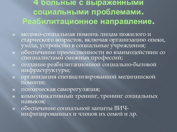 4 больные с выраженными социальными проблемами. Реабилитационное направление.