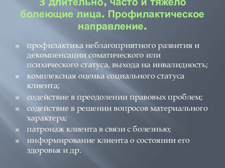 3 длительно, часто и тяжело болеющие лица. Профилактическое