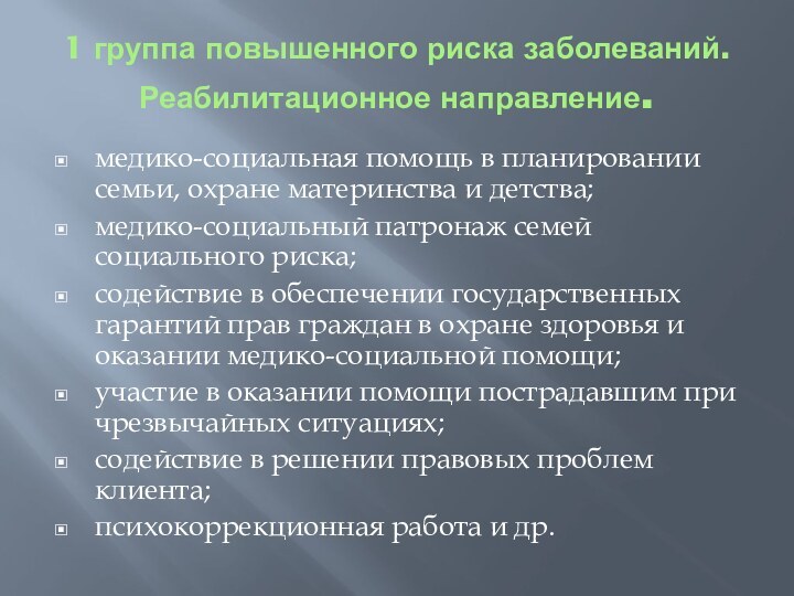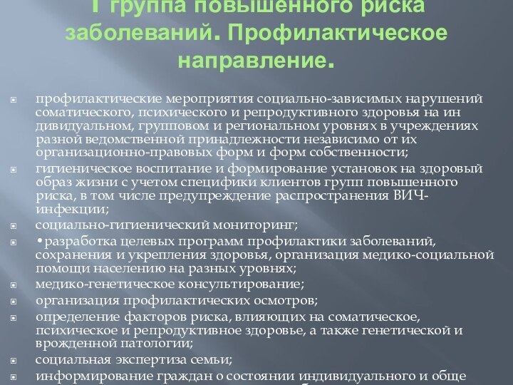 1 группа повышенного риска заболеваний. Профилактическое направление.