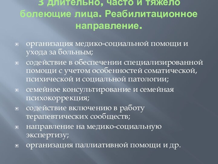 3 длительно, часто и тяжело болеющие лица. Реабилитационное
