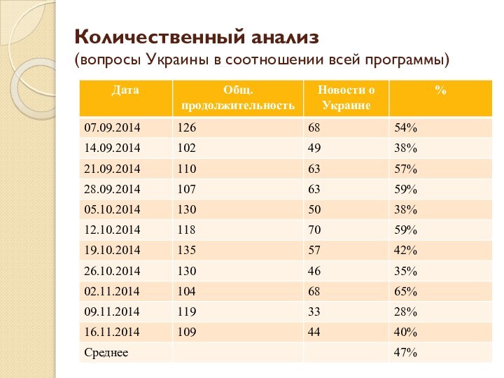 Количественный анализ (вопросы Украины в соотношении всей программы)