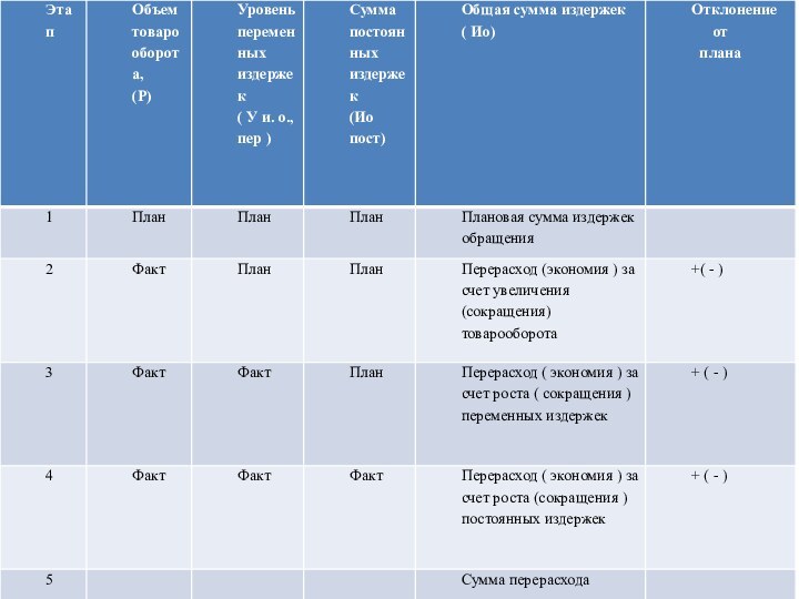 Вывод: перерасход произошел за счет роста постоянных издержек.