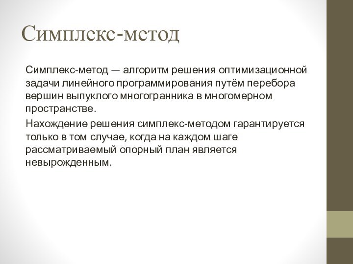 Симплекс-метод — алгоритм решения оптимизационной задачи линейного программирования