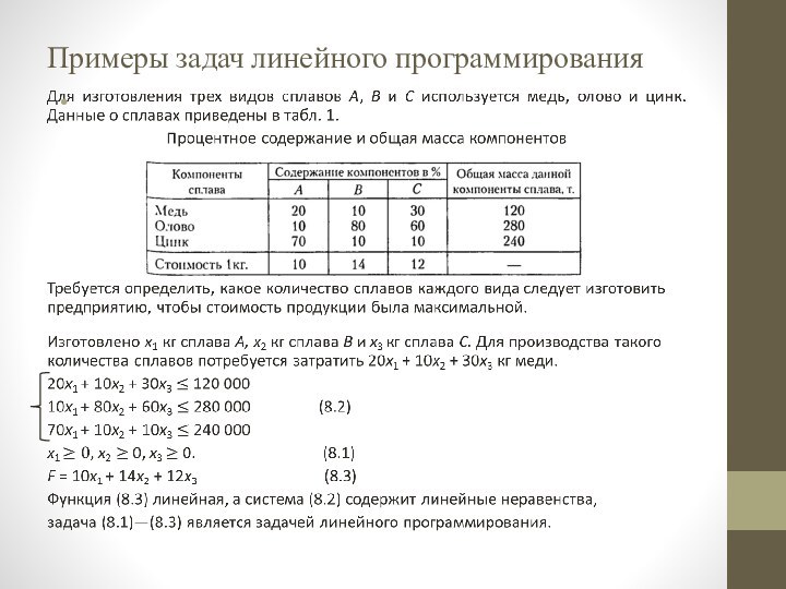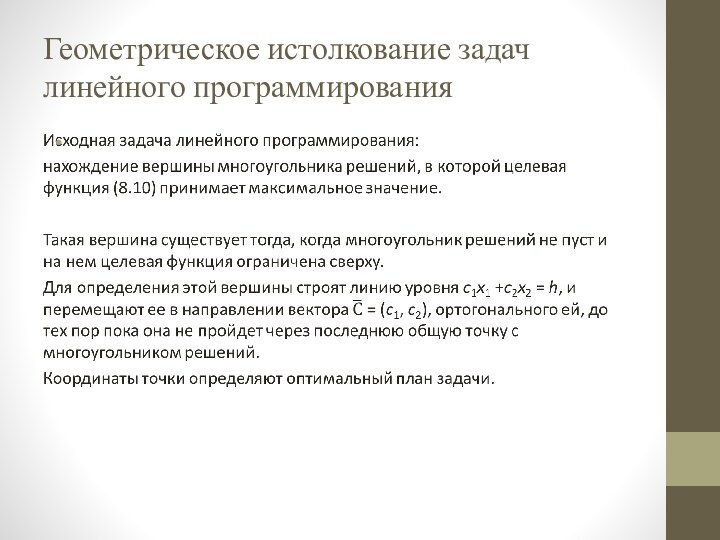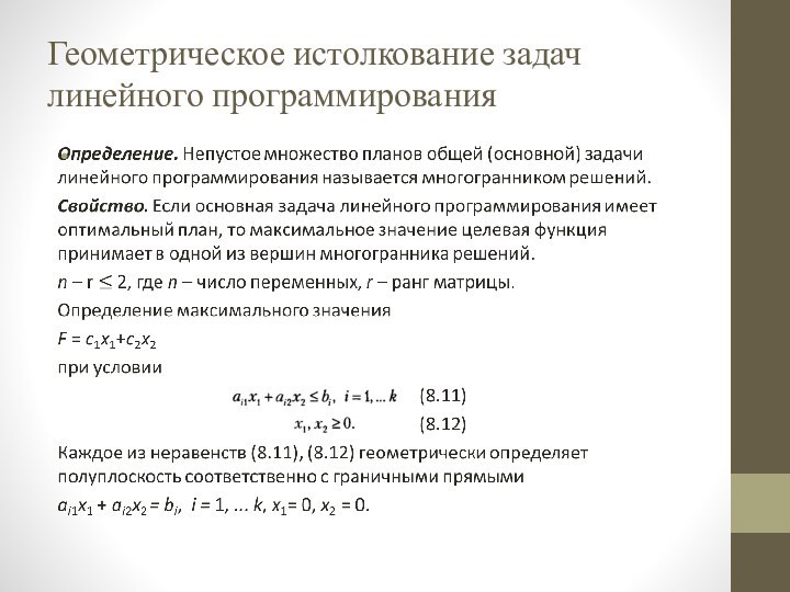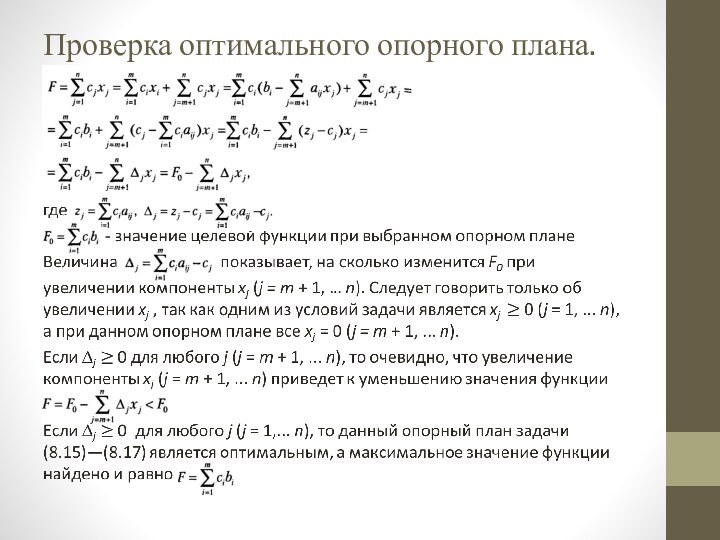 - Если задача линейного программирования разрешима, то максимум целевой функции достигается хотя бы при одном опорном плане.
