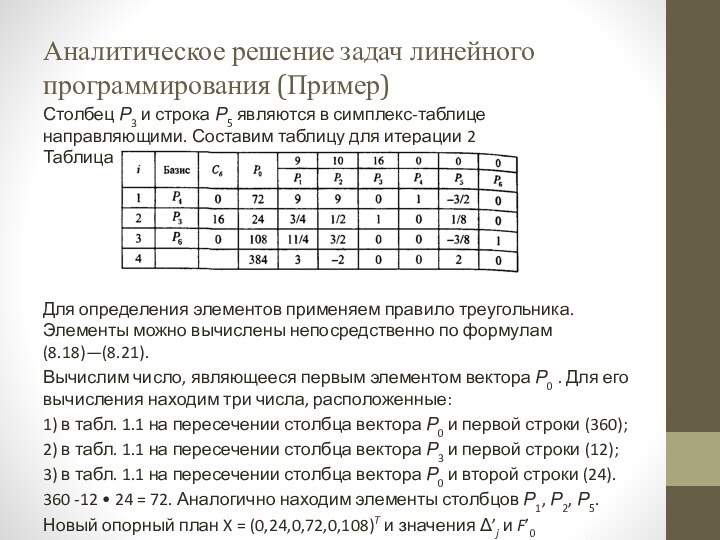 3) в табл. 1.1 на пересечении столбца вектора Р0 и второй строки (24).