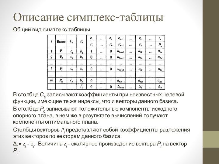 В столбце Р0 записывают положительные компоненты исходного опорного плана, в нем же в результате вычислений получают компоненты оптимального плана.