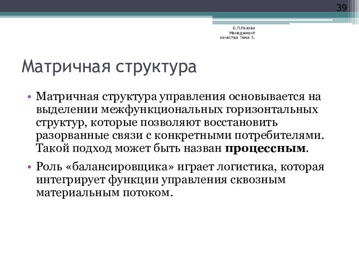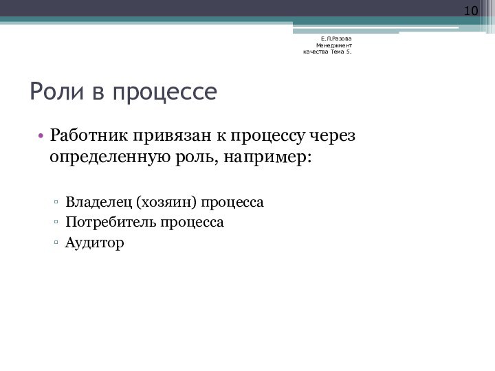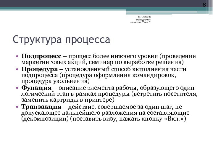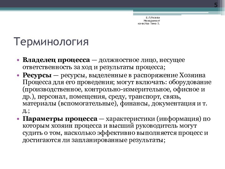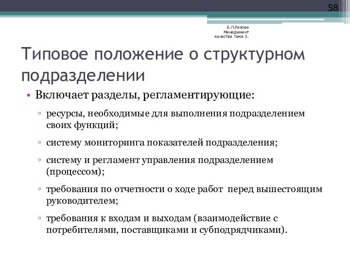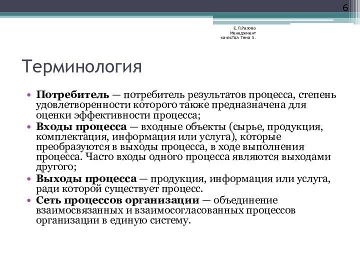 Е.Л.Разова Менеджмент качества Тема 5.
