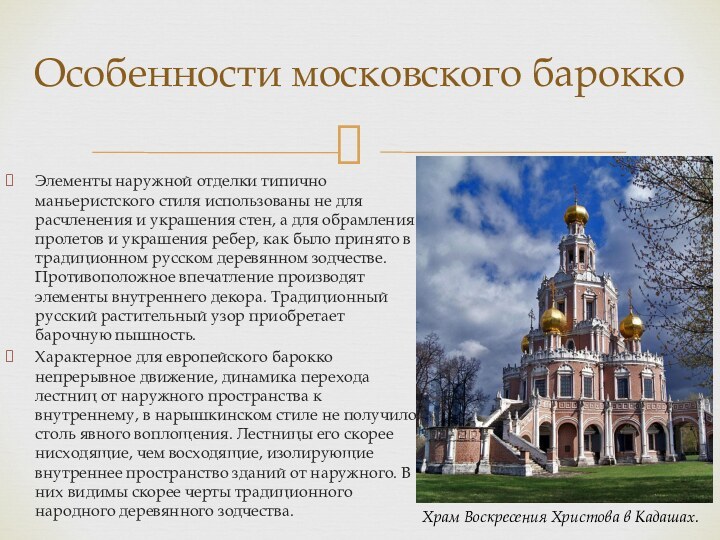 Особенности московского барокко